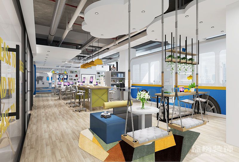 开放的设计思路及风格,为企业形象增光添彩,给员工关怀减压。欢快的色彩,多元化的造型,以及硬装及软装的搭配设计,更易于工作者调节心情与开拓思路,间接的提升了工作效率及质量。
